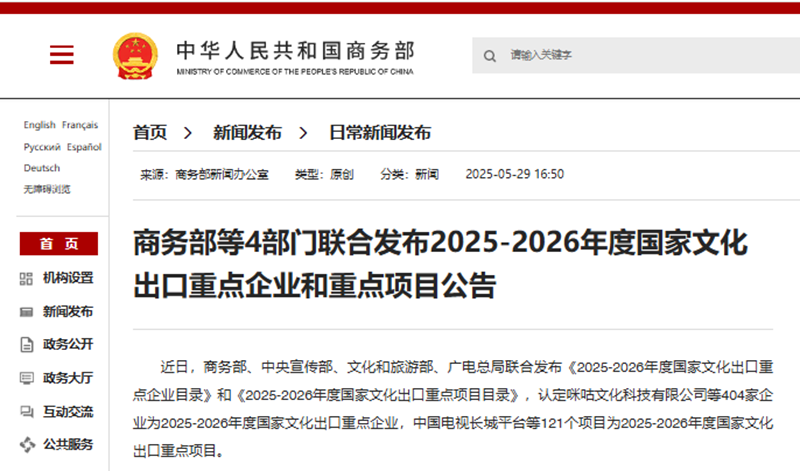 自2007年以來,商務(wù)部、中央宣傳部、文化和旅游部、廣電總局等4部門聯(lián)合,每?jī)赡暝u(píng)審認(rèn)定一批國(guó)家文化出口重點(diǎn)企業(yè)和重點(diǎn)項(xiàng)目,旨在培育一批具有國(guó)際競(jìng)爭(zhēng)力的外向型文化企業(yè),推動(dòng)對(duì)外文化貿(mào)易高質(zhì)量發(fā)展,迄今累計(jì)評(píng)選出3329家企業(yè)、1298個(gè)項(xiàng)目,范圍涵蓋新聞出版、廣播影視、文化藝術(shù)、游戲動(dòng)漫等文化貿(mào)易領(lǐng)域。在政策引導(dǎo)下,一大批文化企業(yè)積極開拓國(guó)際市場(chǎng),文化出口規(guī)模不斷擴(kuò)大,國(guó)際競(jìng)爭(zhēng)力不斷提升,成為推動(dòng)文化走出去的骨干力量。